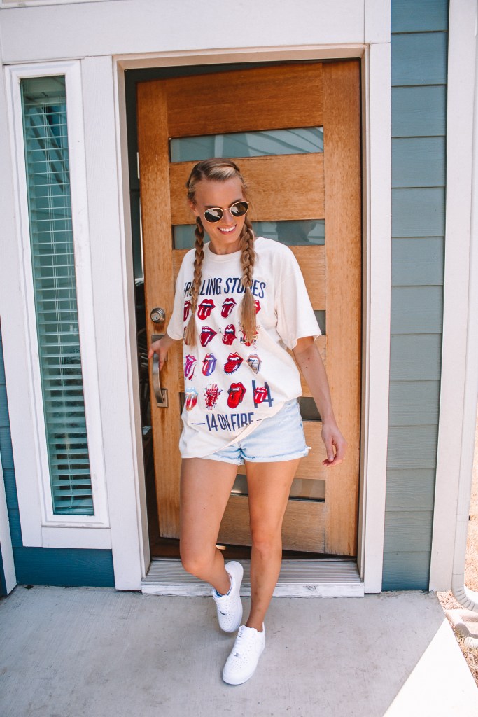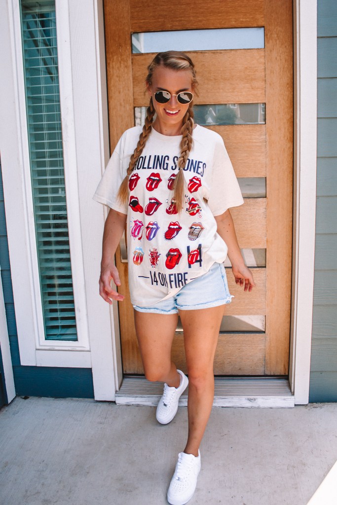 - Rolling Stones tee. Band tees have been on the rise over the past several years, but this summer they are a major trend. I personally love them, but am also one of those people that feels weird wearing t-shirts featuring a band I don’t know or listen to… is that just me? Haha. So when I spotted this Rolling Stones tee I hit the jackpot because I actually do listen to the Rolling Stones (thanks to my aunt who grew up with them as her fave band), can sing along to a bunch of their songs and wouldn’t be clueless if someone actually asked me about my t-shirt ¯\_(ツ)_/¯ Check out these other styles that I’ve linked, too, if you’re a fan of these styles/colors instead.